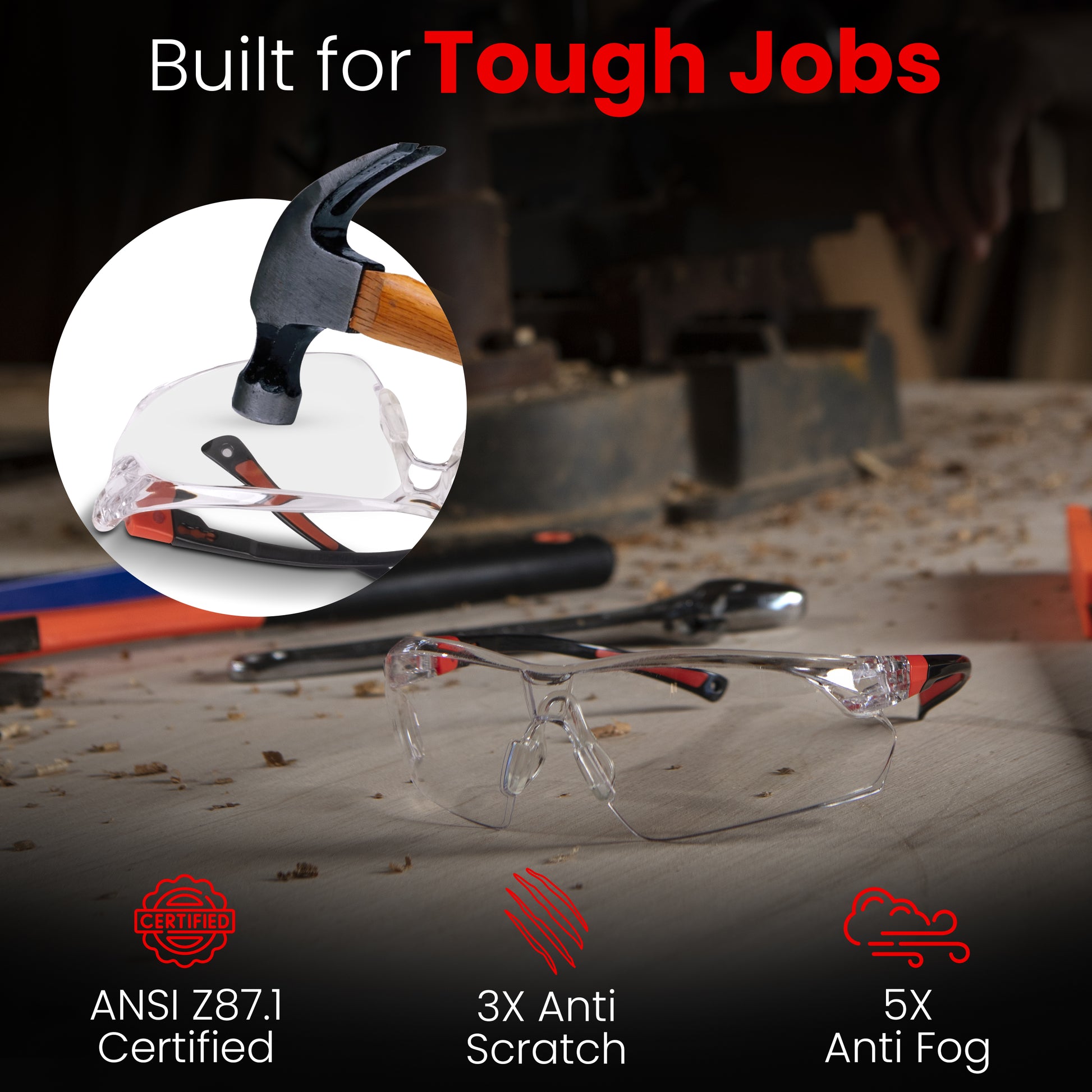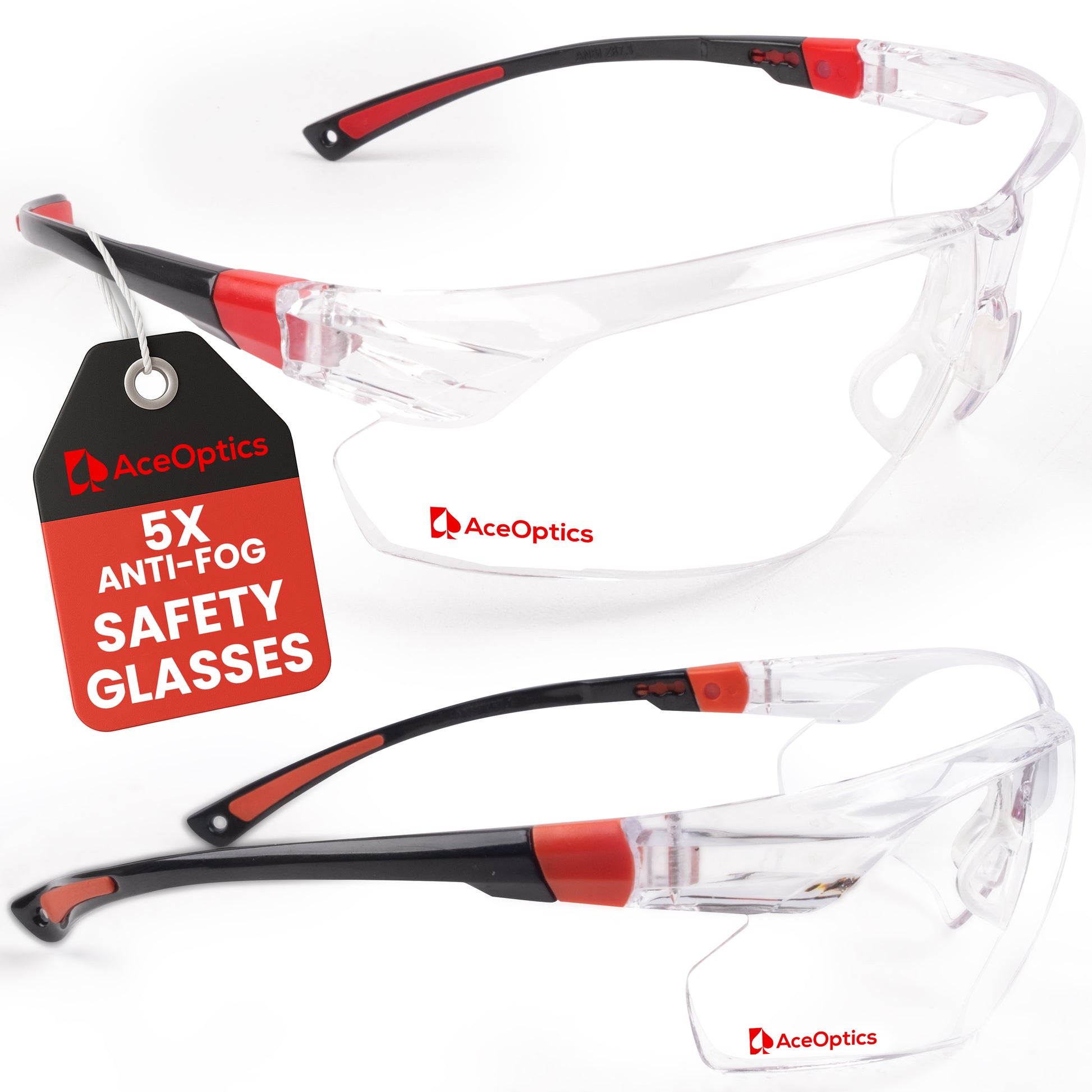 Aceoptics ANSI Z87 Safety Glasses for Men – Black & Red Clear 5X Anti-Fog, Scratch & Impact Resistant Protective Eyewear for Shooting, Gun Range, Work, Pickleball & Sports – Complete Kit