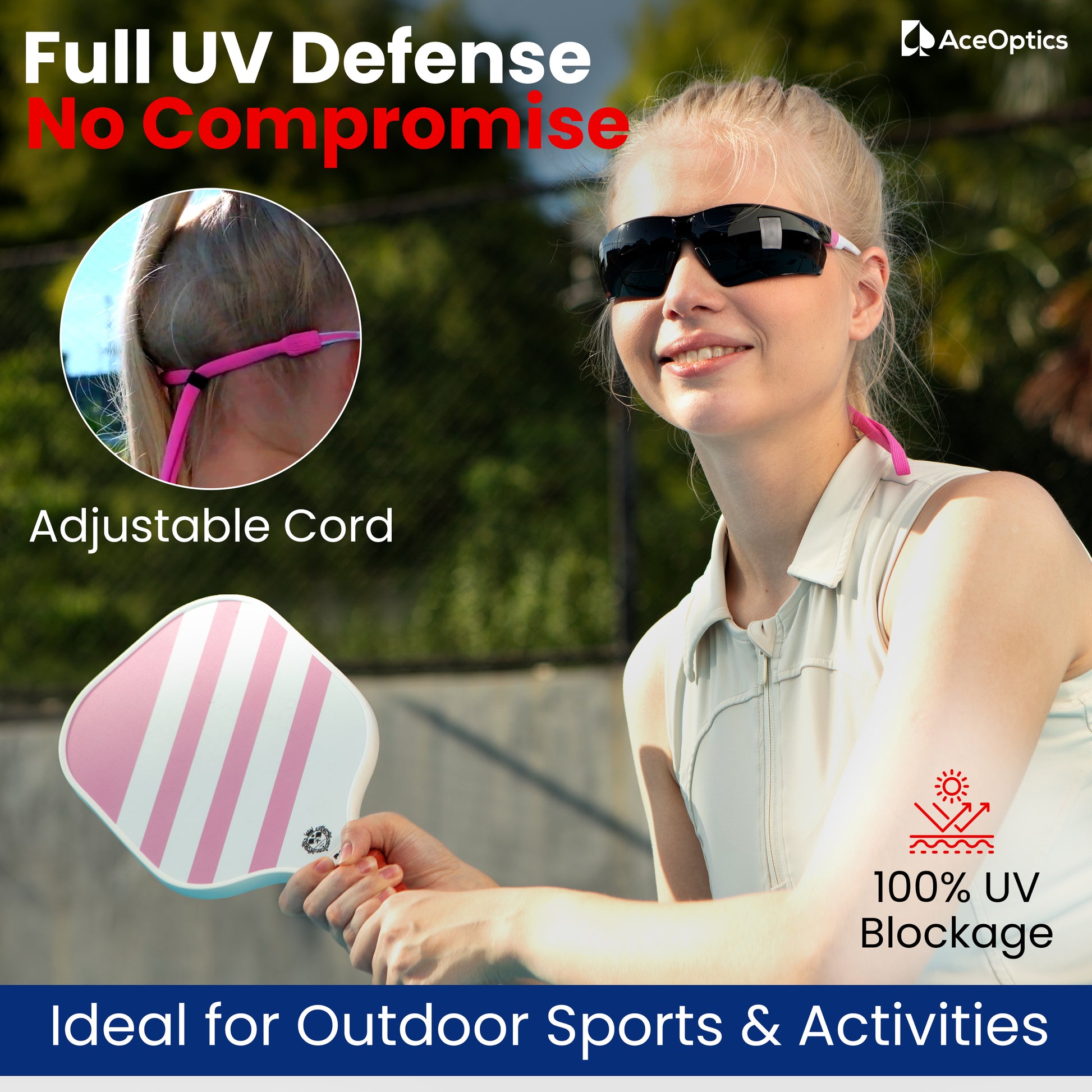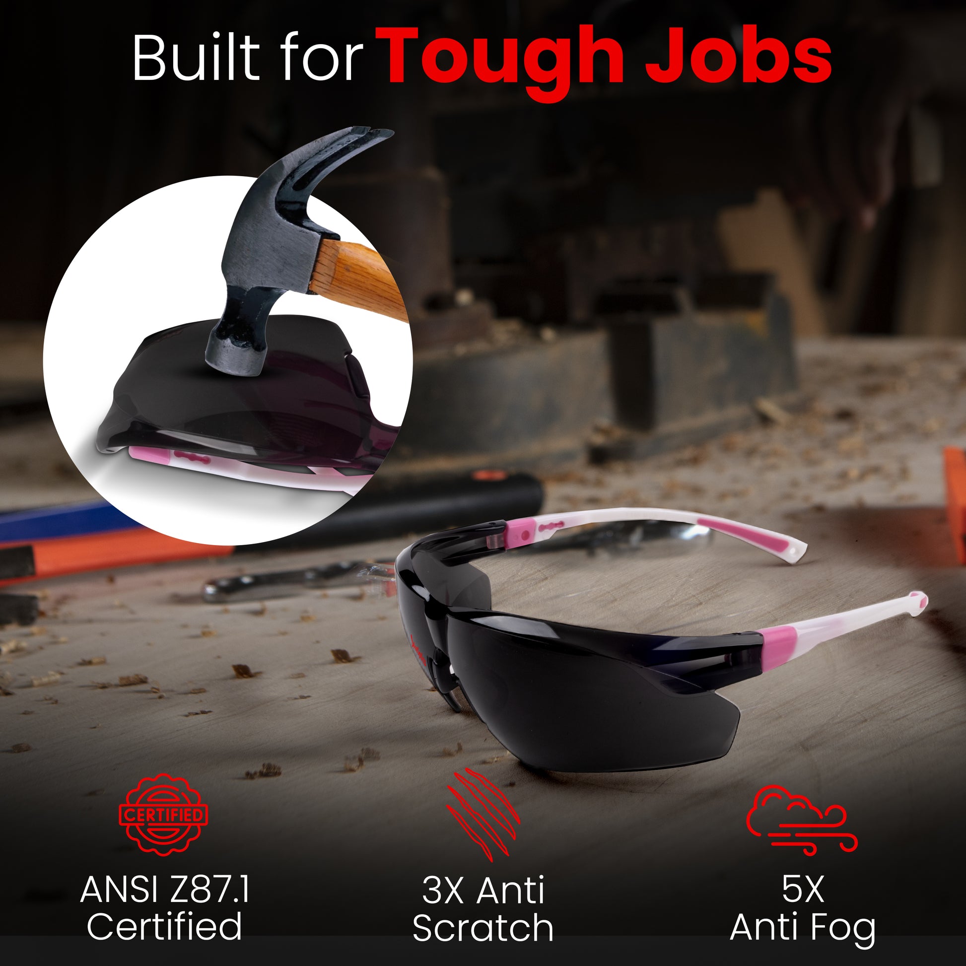 Aceoptics ANSI Z87 Safety Sunglasses for Women – Pink Tinted Wrap Around Shooting Glasses with 5X Anti-Fog Scratch Resistant Lenses – Protective Eyewear for Pickleball, Work, Sports & Gun Range – Kit